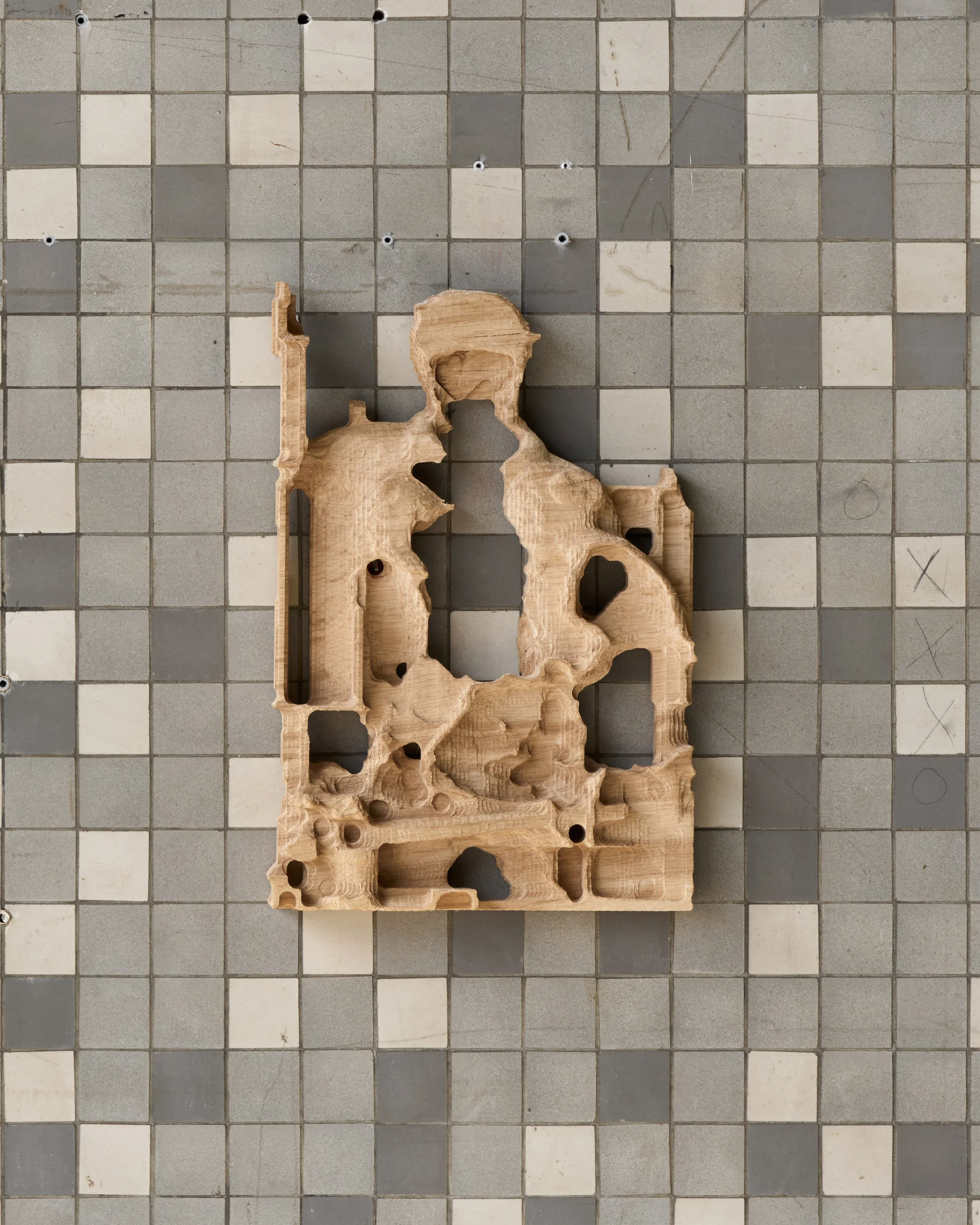 A new series of wood reliefs is based on an archive of visual fragments – advertising, news media, social platforms, and 3D models – digitally processed and CNC-milled into solid wood. The original meanings of the imagery are displaced and transformed, giving rise to new narratives situated in a tension between figuration and abstraction.